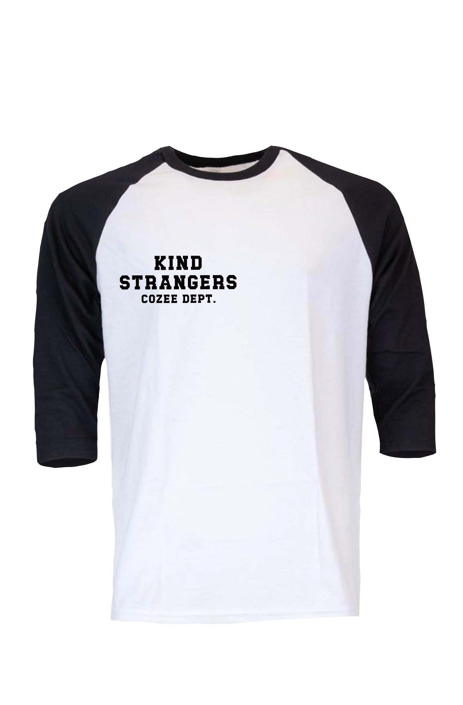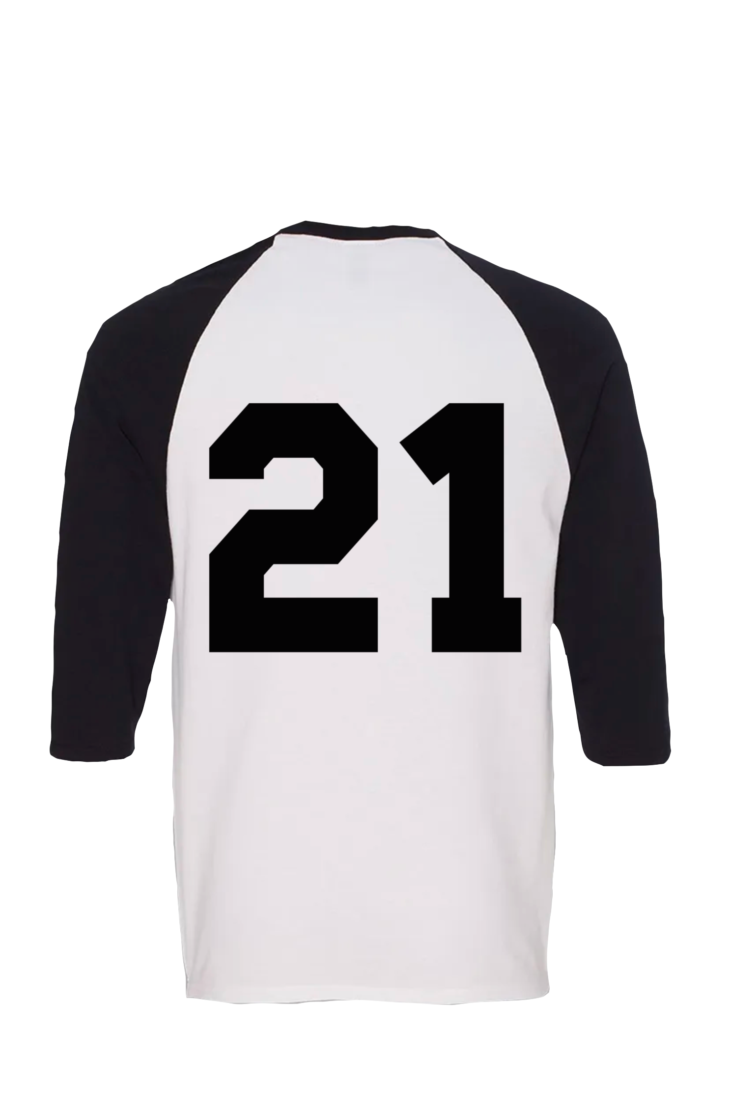 Mid-weight 100% cotton 3/4 raglan tee. Sporty look, with solid black sleeves and black font.