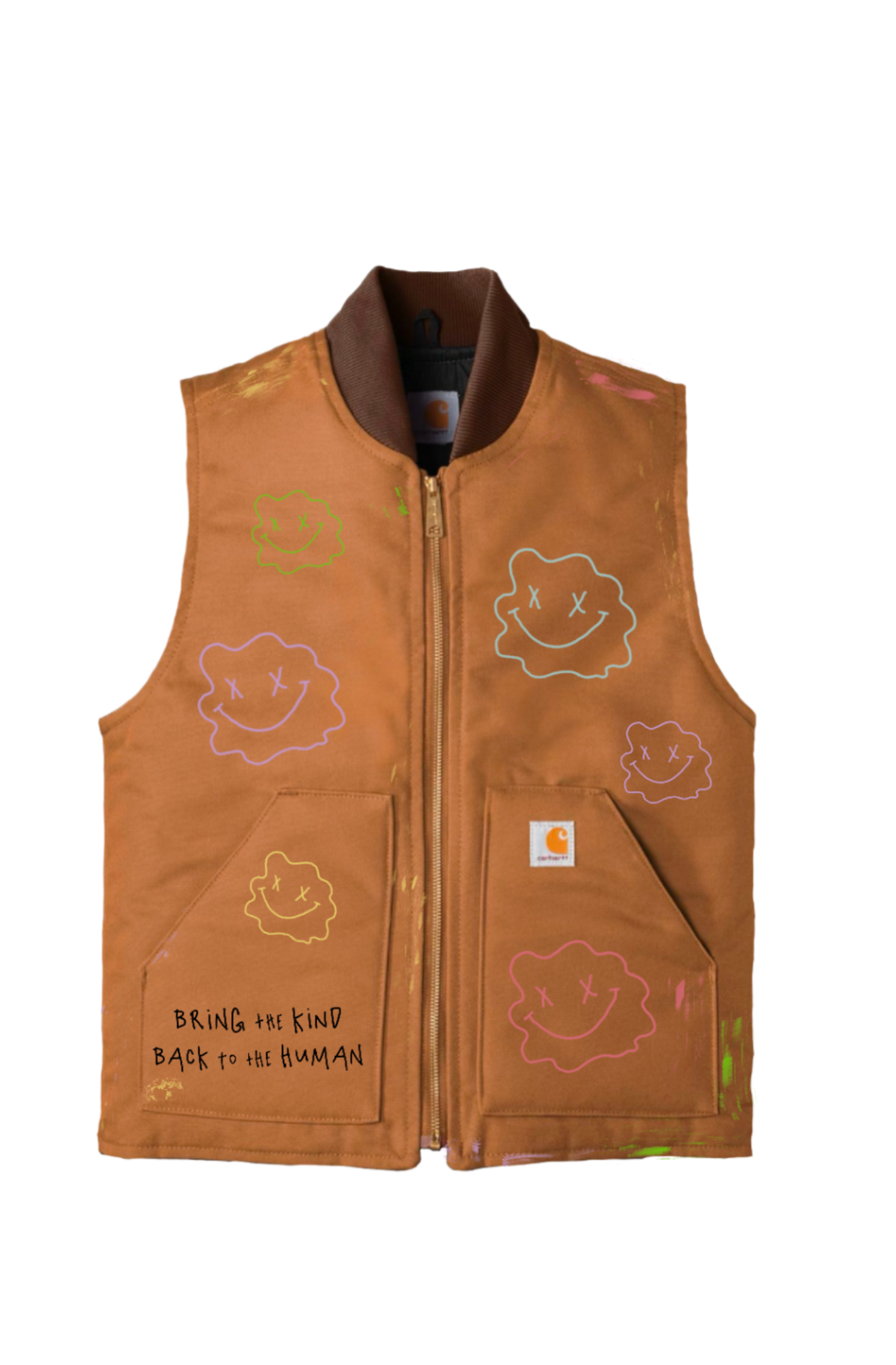 Stay warm and stylish with this Tan Carhartt vest. Its customizable design allows you to personalize it with your choice of , logo font , and blob color. Perfect for layering in cooler weather, this Carhartt vest combines practicality with a classic, KIND and Cozee look.