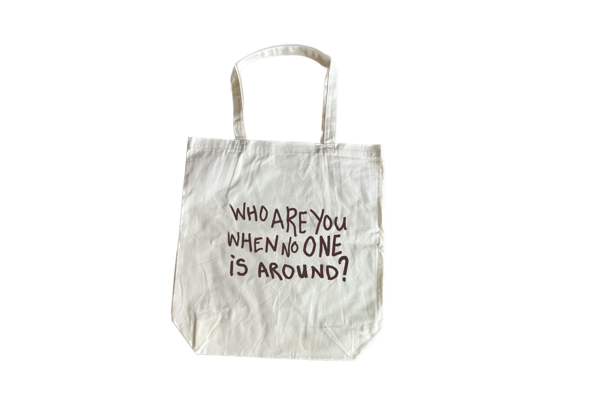 “WHO ARE YOU WHEN NO ONE is AROUND?” tote bag